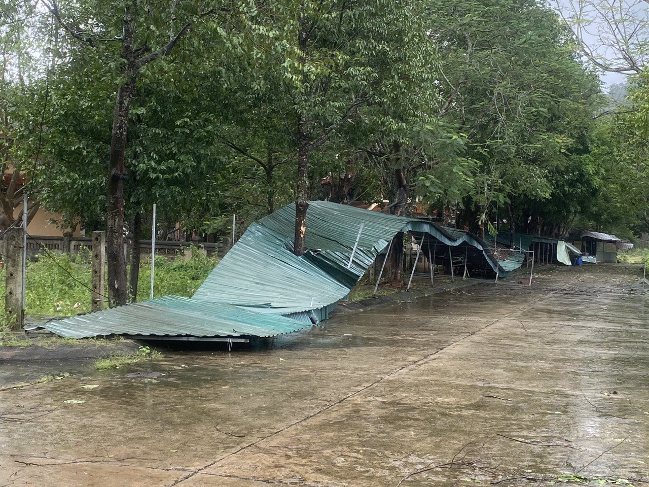 - Hư hỏng hoàn toàn 60m mái tôn hàng quán tại đường vào đến Cửa Đặt;