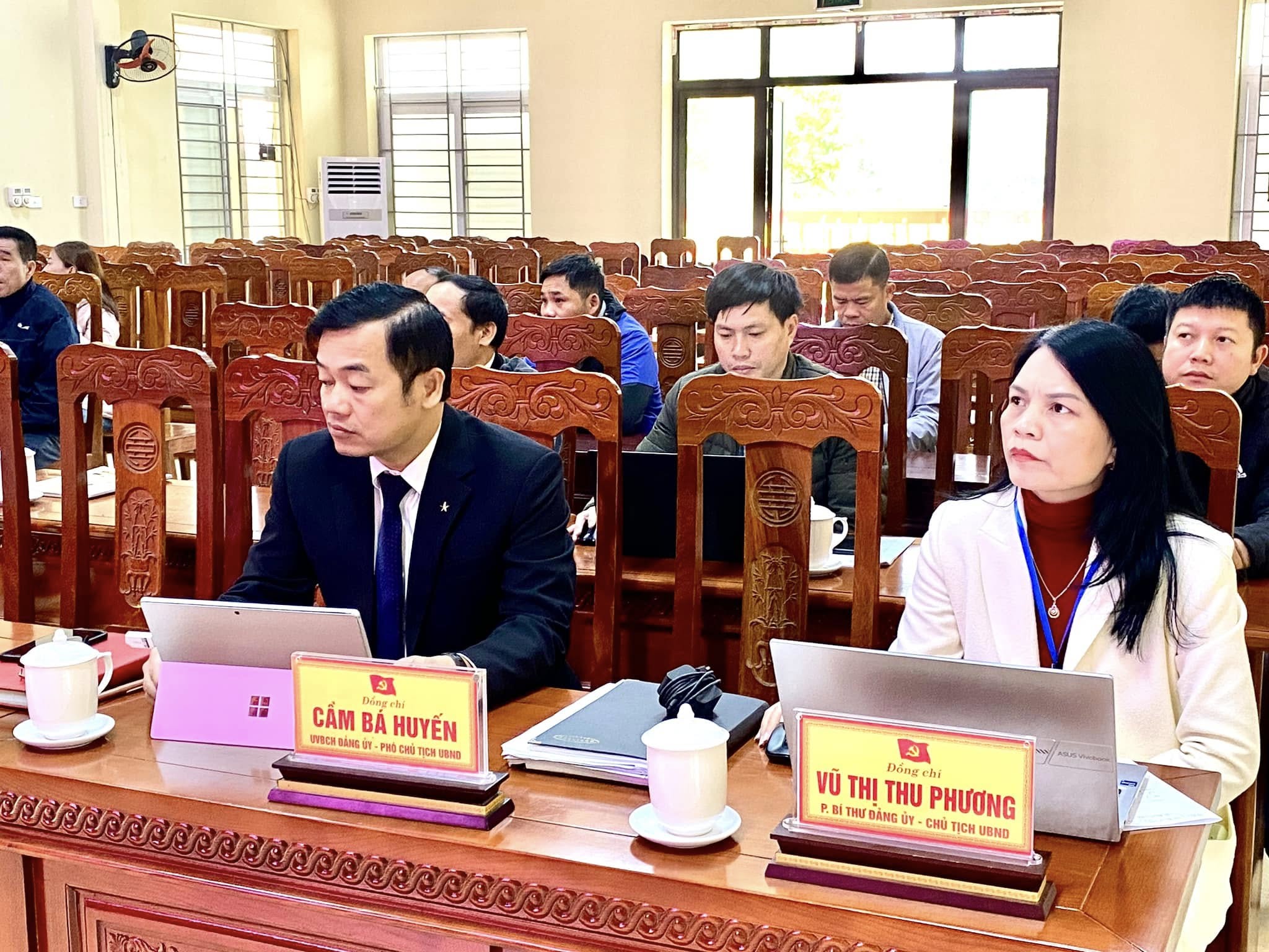 Các đồng chí thường trực Đảng ủy; HĐND; UBND; MTTQ và hội đồng bầu cử xã Vạn Xuân tham dự tại điểm cầu xã...