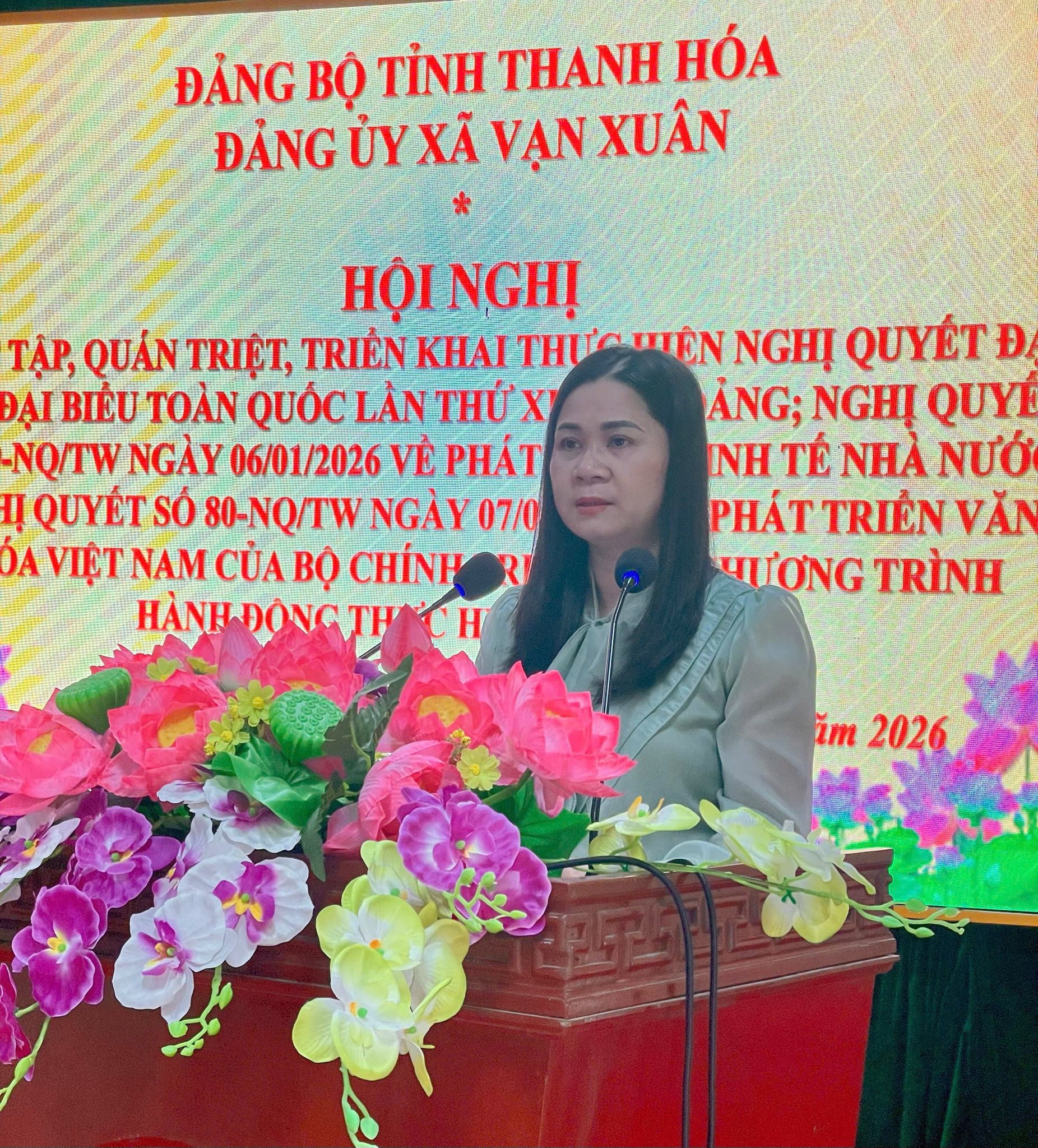 Trong bối cảnh toàn Đảng, toàn dân đang nỗ lực đưa các nghị quyết của Đảng vào cuộc sống, ngày 24 tháng 3 năm 2026, Đảng bộ xã Vạn Xuân đã tổ chức Hội nghị triển khai, quán triệt và xây dựng chương trình hành động thực hiện Nghị quyết Đại hội đại biểu toàn quốc lần thứ XIV của Đảng; Nghị quyết số 79-NQ/TW ngày 06/01/2026 về phát triển kinh tế nhà nước; Nghị quyết số 80-NQ/TW ngày 07/01/2026 về phát triển văn hóa Việt Nam của Bộ Chính trị. Hội nghị có ý nghĩa đặc biệt quan trọng nhằm thống nhất nhận thức, nâng cao quyết tâm chính trị và cụ thể hóa các chủ trương lớn của Đảng thành hành động thiết thực, phù hợp với tình hình thực tiễn của địa phương.