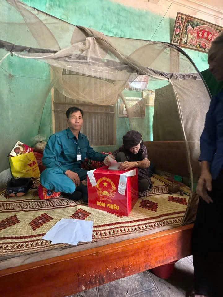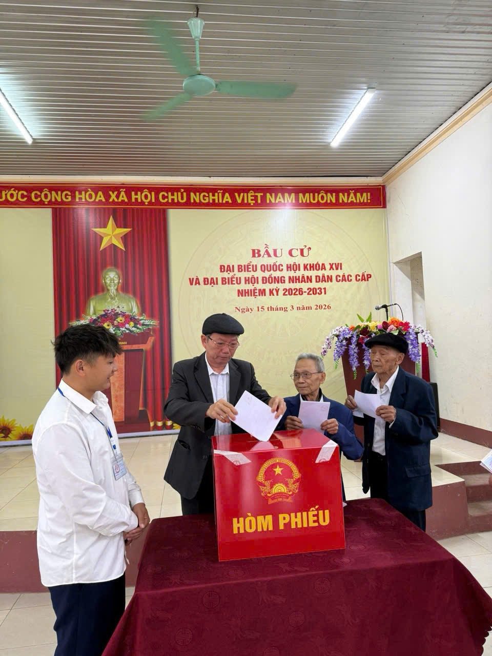 Tại nhiều thôn trong xã, cán bộ tổ bầu cử đã trực tiếp đến từng nhà, ân cần hướng dẫn các cử tri thực hiện đúng quy trình bỏ phiếu. Dù sức khỏe không còn tốt, nhiều cụ cao tuổi vẫn bày tỏ niềm vui và sự xúc động khi được tận tay bỏ lá phiếu của mình, thể hiện trách nhiệm và quyền làm chủ của công dân.