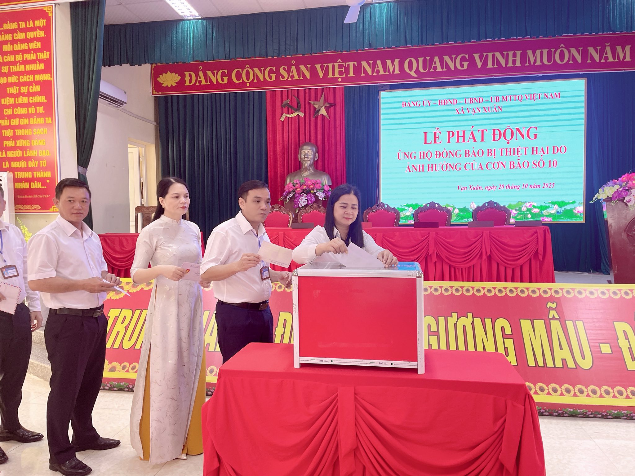 Tổ quốc Việt Nam tỉnh Thanh Hoá về việc ủng hộ đồng bào bị thiệt hại do bão số 10 (Bualoi), sáng ngày 20/ 10/2025, xã Vạn Xuân đã tổ chức lễ phát động ủng hộ đồng bào bị thiệt hại do bão số 10 gây ra.